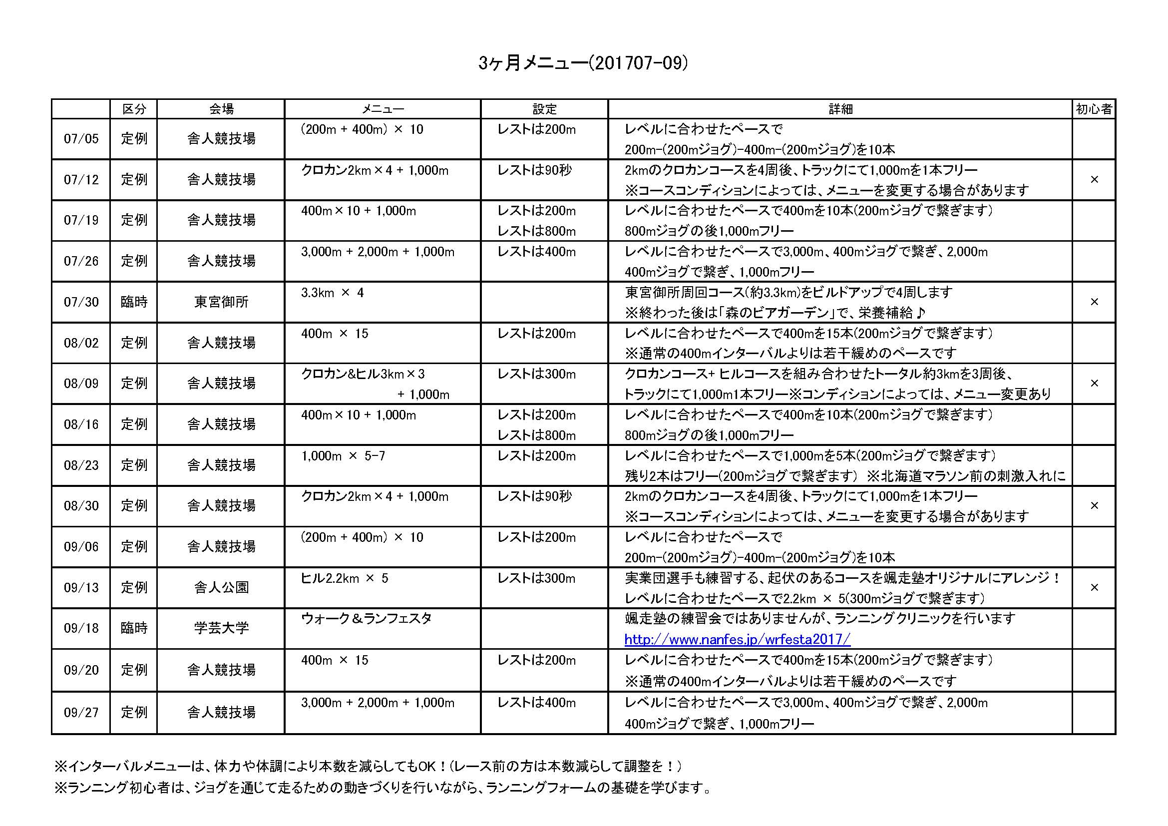 ※ビギナーの方、この秋フルマラソンに初挑戦という方は、現在の走力を拝見した上で、長く走るために必要な動き作りを中心に行い、目標大会での完走を目指します。暑い時期ですが、仲間と一緒にレベルアップしましょう(^_-)-☆